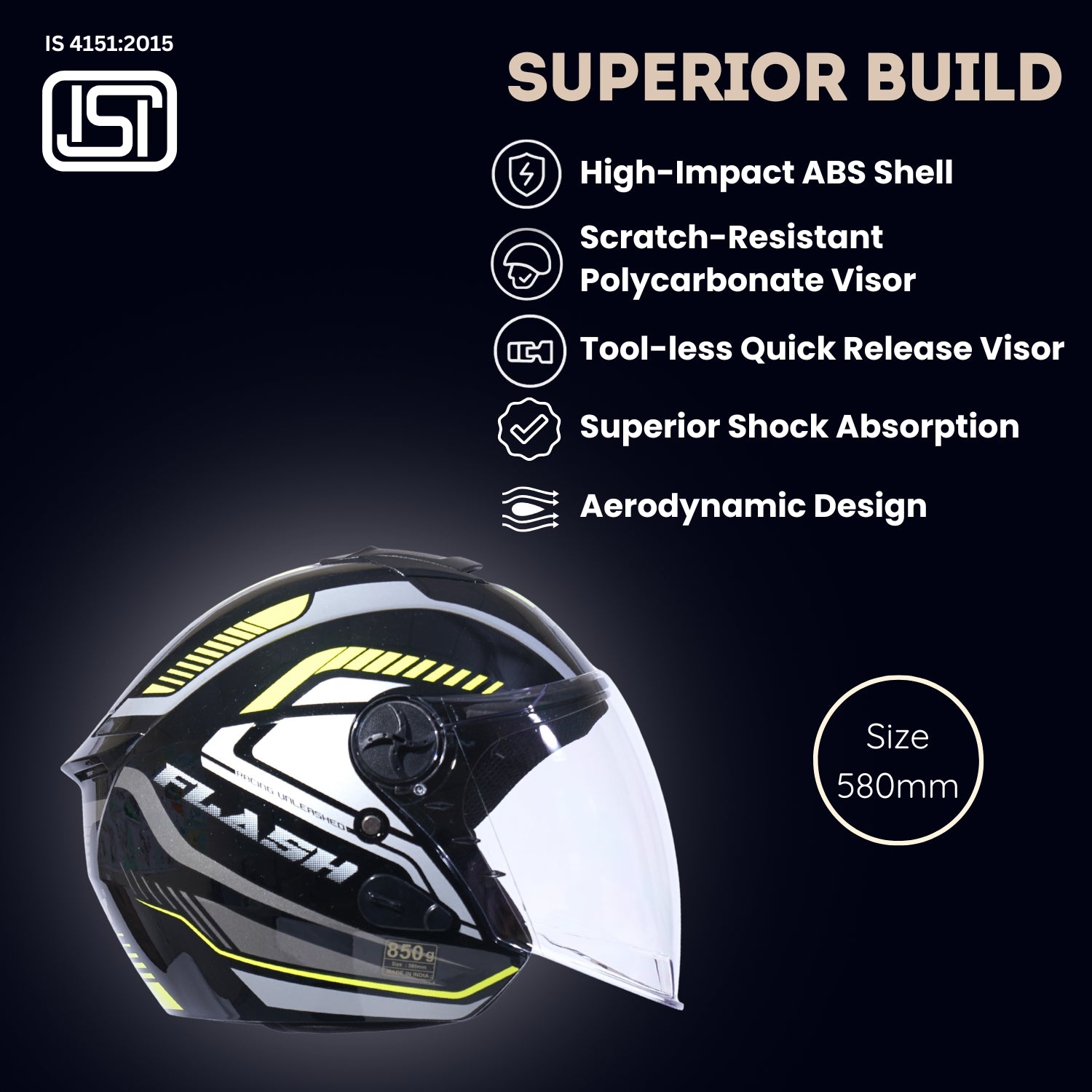 - Superior Protection: The helmet covers the head and half face. It comes with ISI certification for the highest level of security.