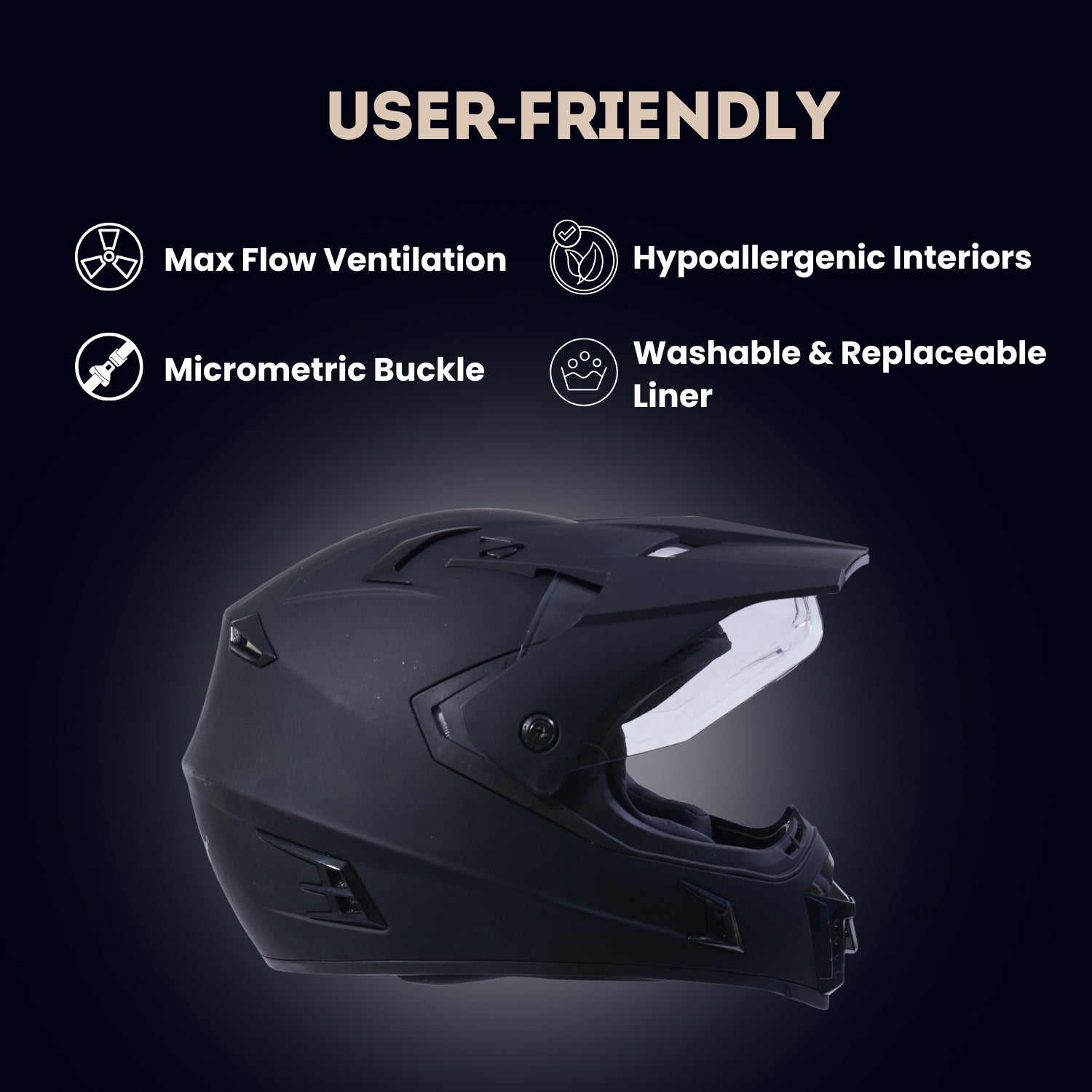- Superior Protection: The helmet covers the head and full face for complete protection.